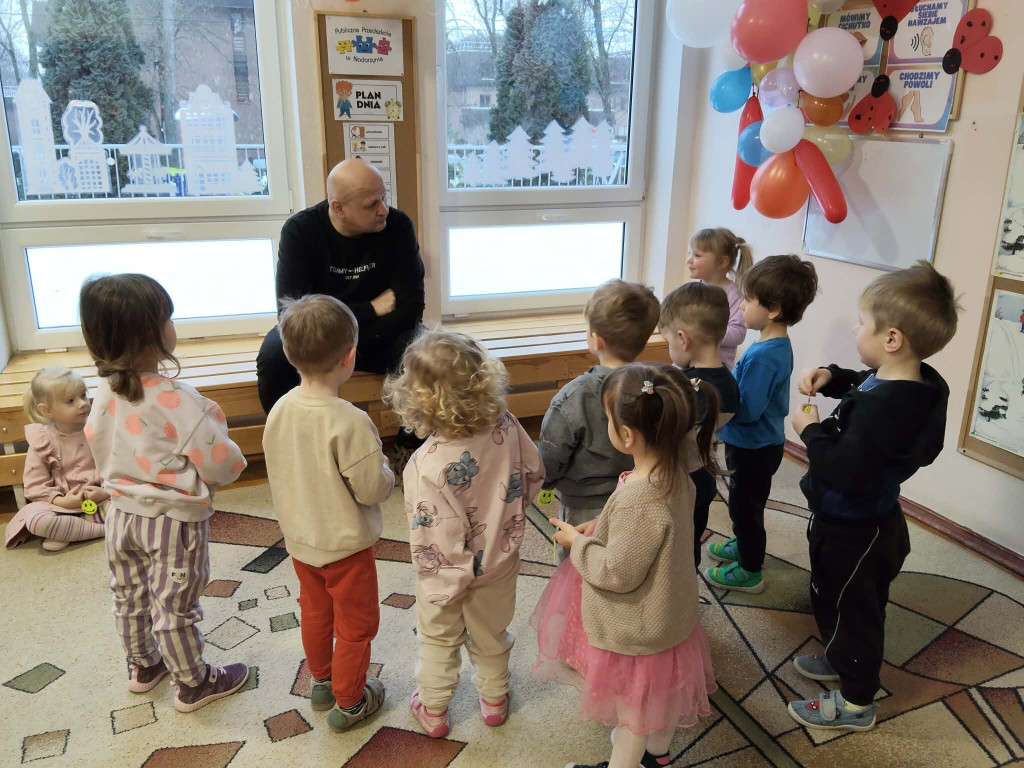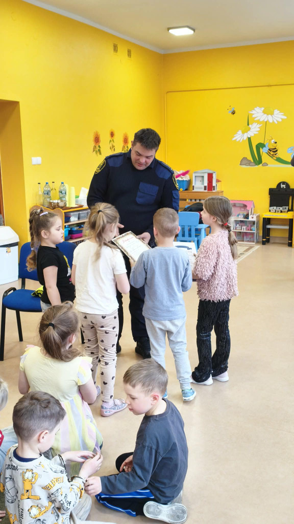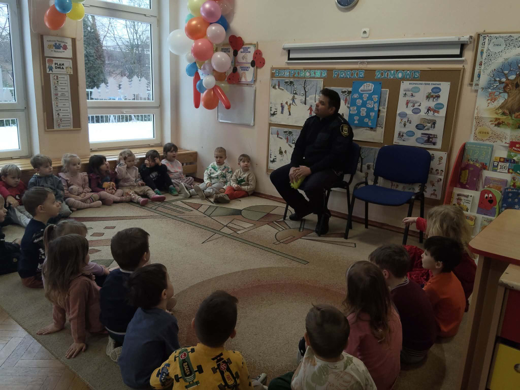 23.01.2026 roku w ramach akcji ,,Bezpieczne ferie” Publiczne Przedszkole w Nadarzynie odwiedzili przedstawiciele Nadarzyńskiej Straży Gminnej oraz Ochotniczej Straży Pożarnej w Nadarzynie. Spotkania z przedszkolakami poprowadził p. Marcin Marczak.