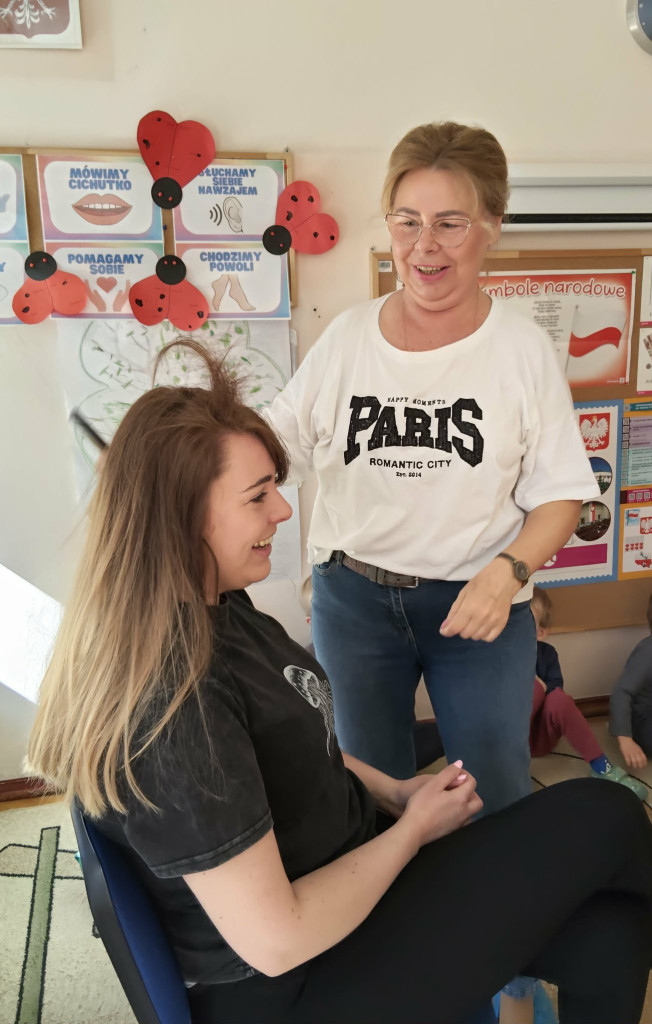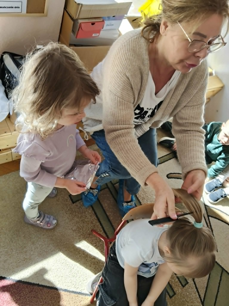 W poniedziałek Biedronki odwiedziła babcia Lei. Pani Renata od wielu lat wykonuje zawód fryzjerki. Opowiedziała dzieciom i pokazała na zdjęciach, jak to było dawniej kiedy zaczynała swoją przygodę z fryzjerstwem. Biedronki poznały narzędzia, którymi w swojej pracy posługuje się fryzjer. Następnie Pani Renata wykonała chętnym dzieciom fryzury. W prezentacji babci towarzyszyła Lea i jej mama Pani Paulina. Serdecznie dziękujemy za odwiedziny.