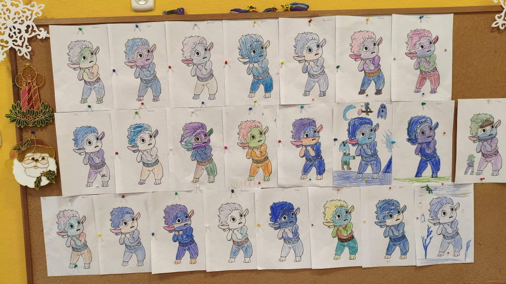na to co widzimy. Na zakończenie zajęcia wszystkie dzieci pokolorowały Bojka i uzupełniły