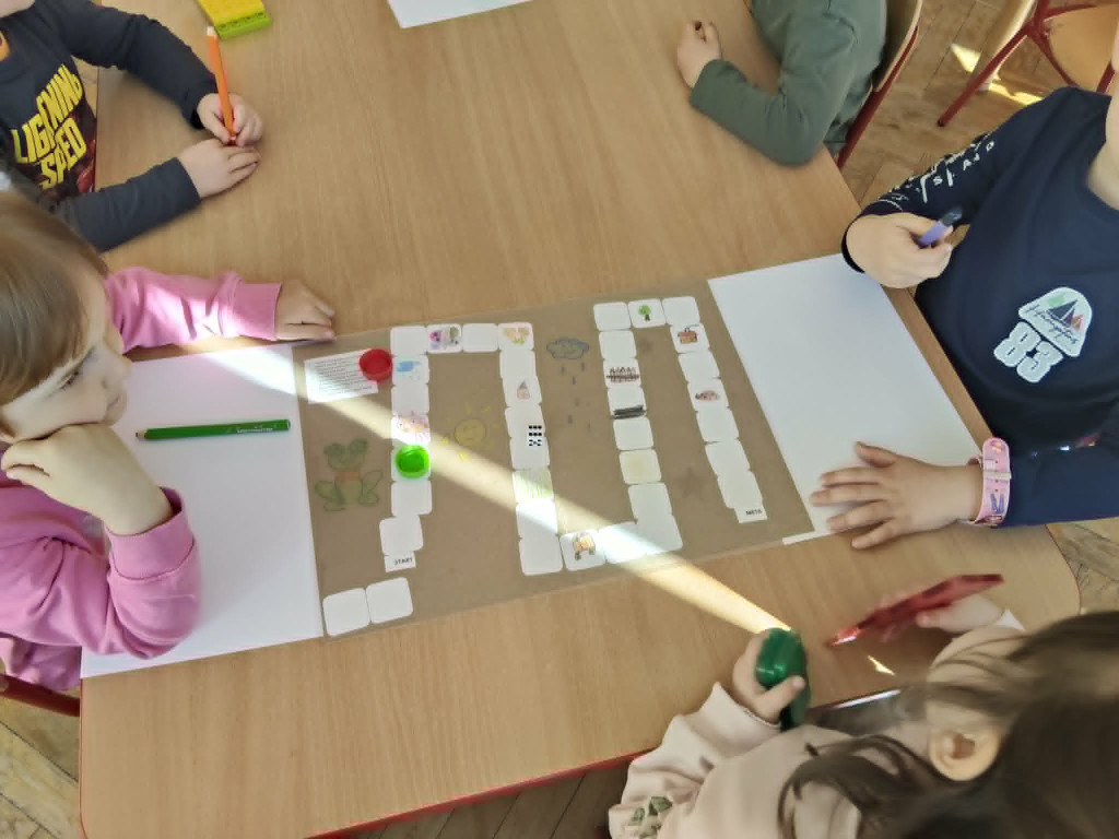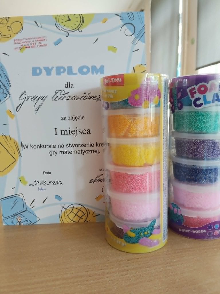 Z okazji Dnia Kreatywności oraz w celu kształtowania umiejętności matematycznych dzieci, wszystkie grupy naszego przedszkola wzięły udział w konkursie gier planszowych. Zadaniem każdego zespołu było własnoręczne przygotowanie gry o wybranej tematyce, wraz z instrukcją. Przez kolejne dni grupy wymieniały się swoimi dziełami, testując które z nich są najbardziej atrakcyjne. 28 kwietnia dzieci zagłosowały i wybrały najlepszą ich zdaniem grę – warcaby, przygotowane przez Wiewiórki. Wszystkim dzieciom gratulujemy kreatywności, a Wiewiórkom życzymy pomysłowych zabaw z wykorzystaniem wygranych mas sensorycznych.