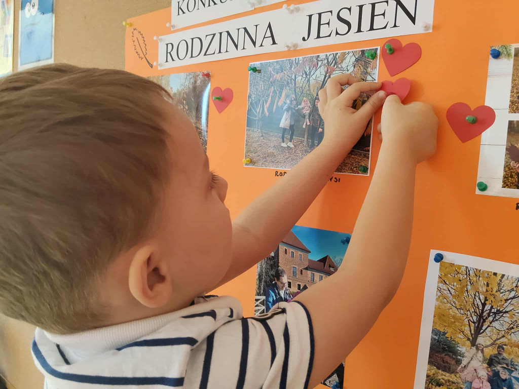 Ostatnie dni w grupie Biedronek to czas rozmów, zabaw i aktywności związanych z budowaniem poczucia wspólnoty, tej dużej narodowej, grupowej, ale też tej prywatnej rodzinnej. Jako mali Polacy uczciliśmy obchody Święta 11 Listopada, dowiedzieliśmy się jak ważne było wsparcie rodaków, nawet wtedy kiedy Polski nie było na mapach świata. W codziennych grach i zabawach budowaliśmy relacje rówieśnicze, uczyliśmy się co to kompromis i współpraca. Rozmawialiśmy również o tym, jak ważna w życiu człowieka jest rodzina. Podsumowaniem naszych aktywności był konkurs fotograficzny „Rodzinna jesień”, w którym na fotografiach zobaczyliśmy chwile szczęścia, ciepła i miłości rodzinnej uchwycone w jesiennych barwach. Dzieci same wybrały zdjęcia, które najbardziej im się podobały. Antosiowi i jego rodzinie gratulujemy wygranej, a wszystkim przedszkolakom życzymy dzieciństwa tak kolorowego, jak tęcza na fotografii kolegi.