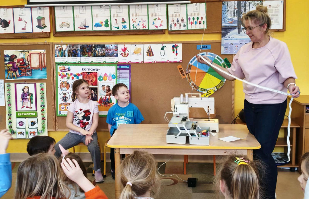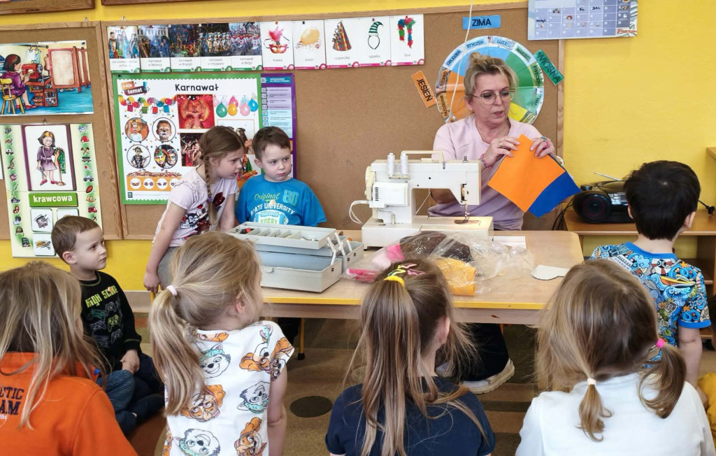 Każdy z nas korzysta z efektów pracy krawcowej lub krawca, nosząc na sobie ubrana, ale czy każdy dzieci zdają sobie sprawę ile wysiłku muszą oni włożyć, aby powstały takie ubrania? 27.01.2026r. grupy Żabki, Pszczółki oraz Motylki odwiedziła Krawcowa – babcia naszych przedszkolaków Pawełka i Ingi.