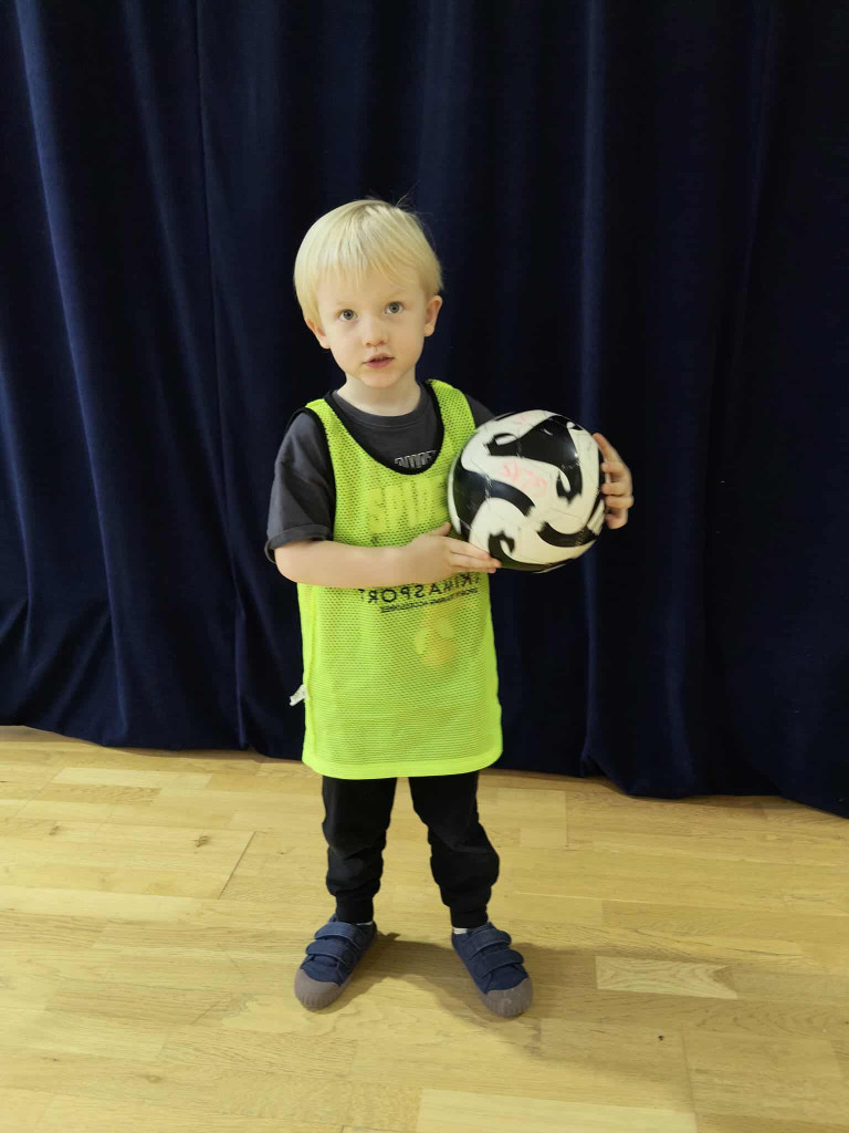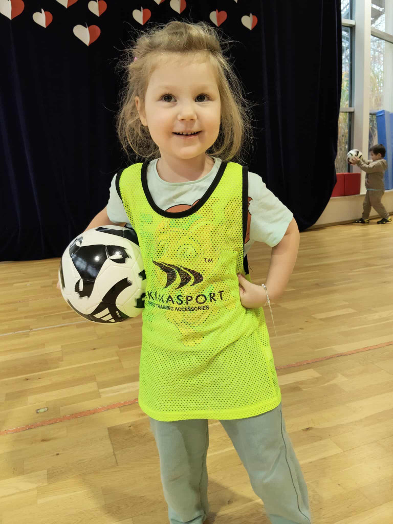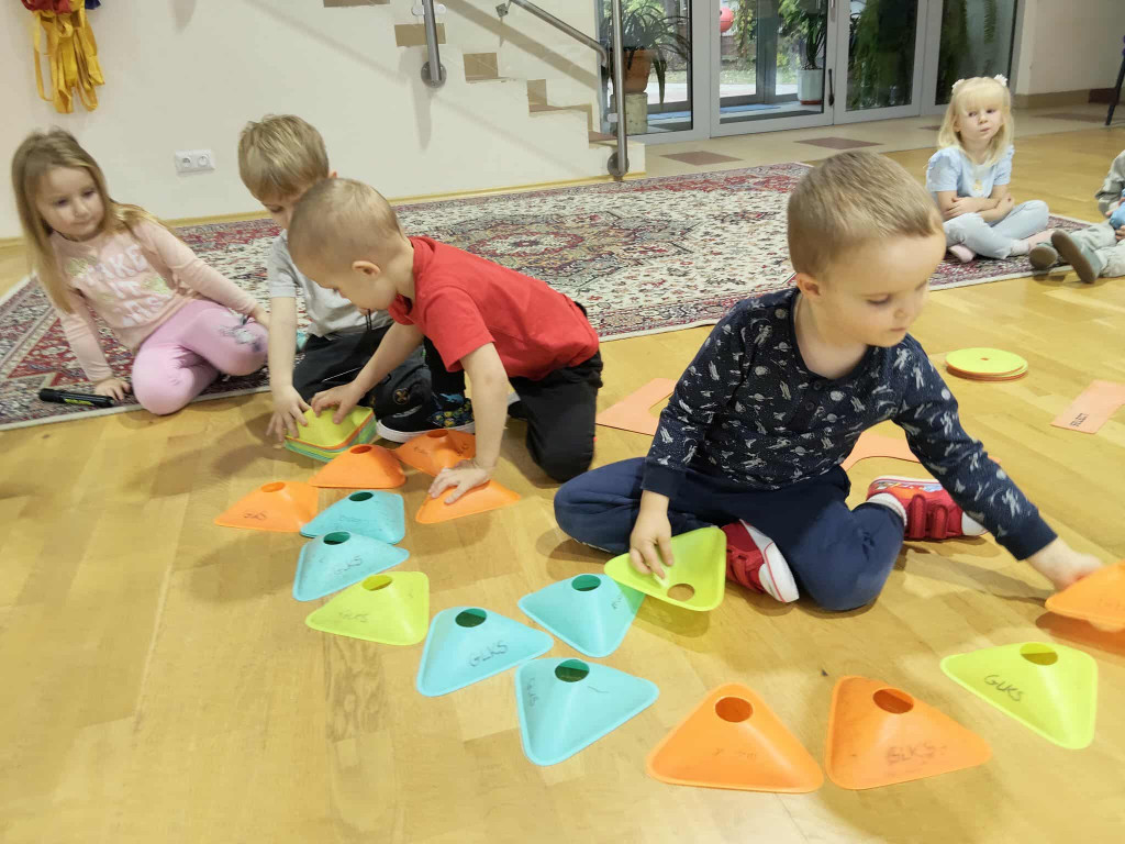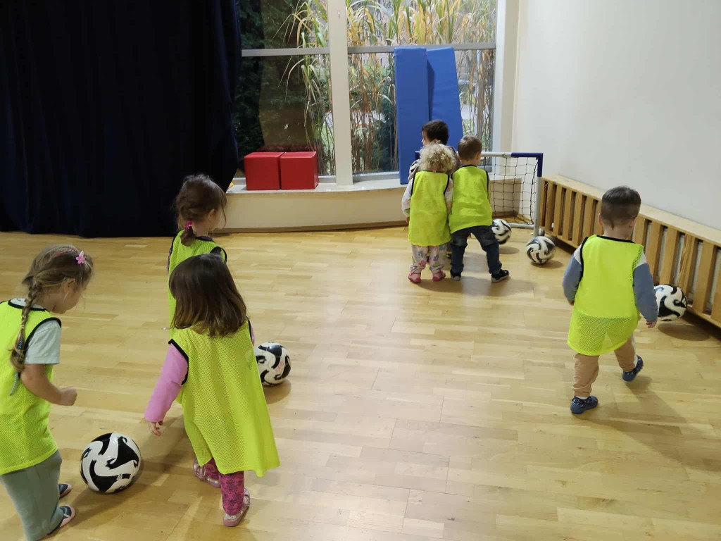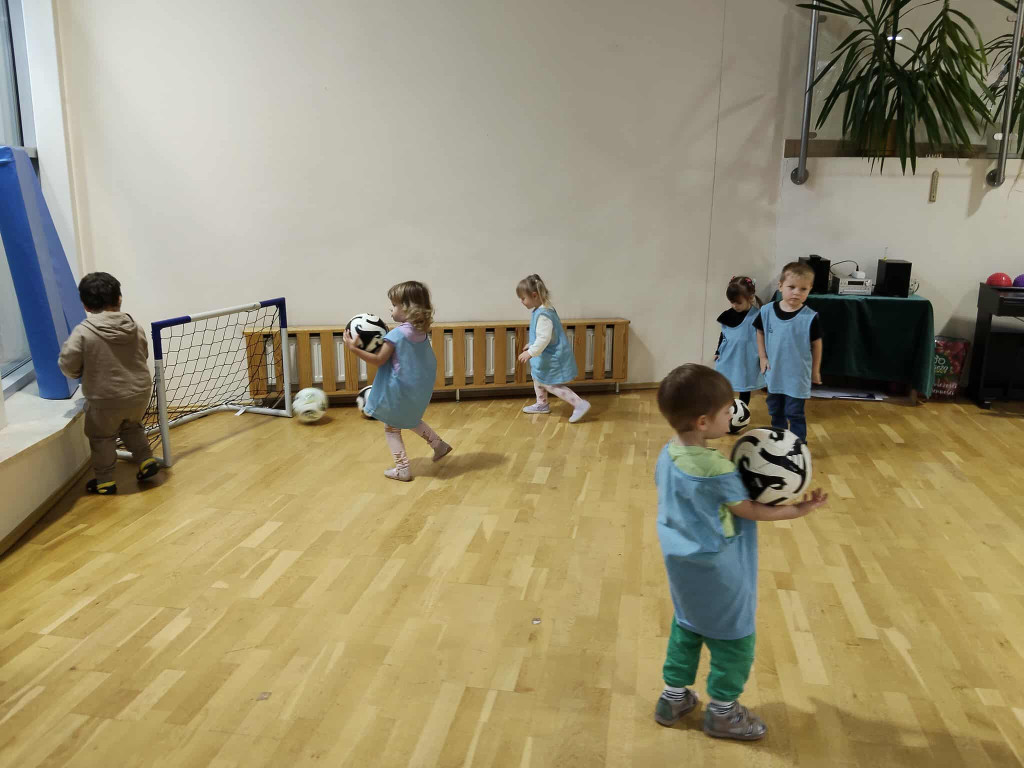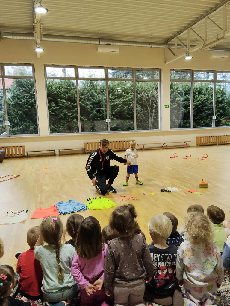 Dzisiaj w naszym przedszkolu gościliśmy Pana Mateusza, tatę Julka. Pan Mateusz jest trenerem piłki nożnej i na co dzień dba o kondycję naszych najstarszych przedszkolaków. Dzisiaj swoją sprawność fizyczną rozwijały również Biedronki. Julek dzielnie asystował swojemu tacie. Razem pokazali nam jak wygląda strój sportowy, a także różnorodne atrybuty potrzebne w pracy trenera. Po rozgrzewce maluchy dzielnie pokonywały przeszkody na czterech torach wyścigowych. Zwieńczeniem naszych aktywności były zabawy z piłką, czasami bardziej ręczną, niż nożną 🙂